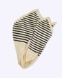 A sleek, minimal square scarf featuring bold linear detailing on soft, fluid silk. Lightweight, elegant, and easy to style — perfect for adding a refined edge to any fit.