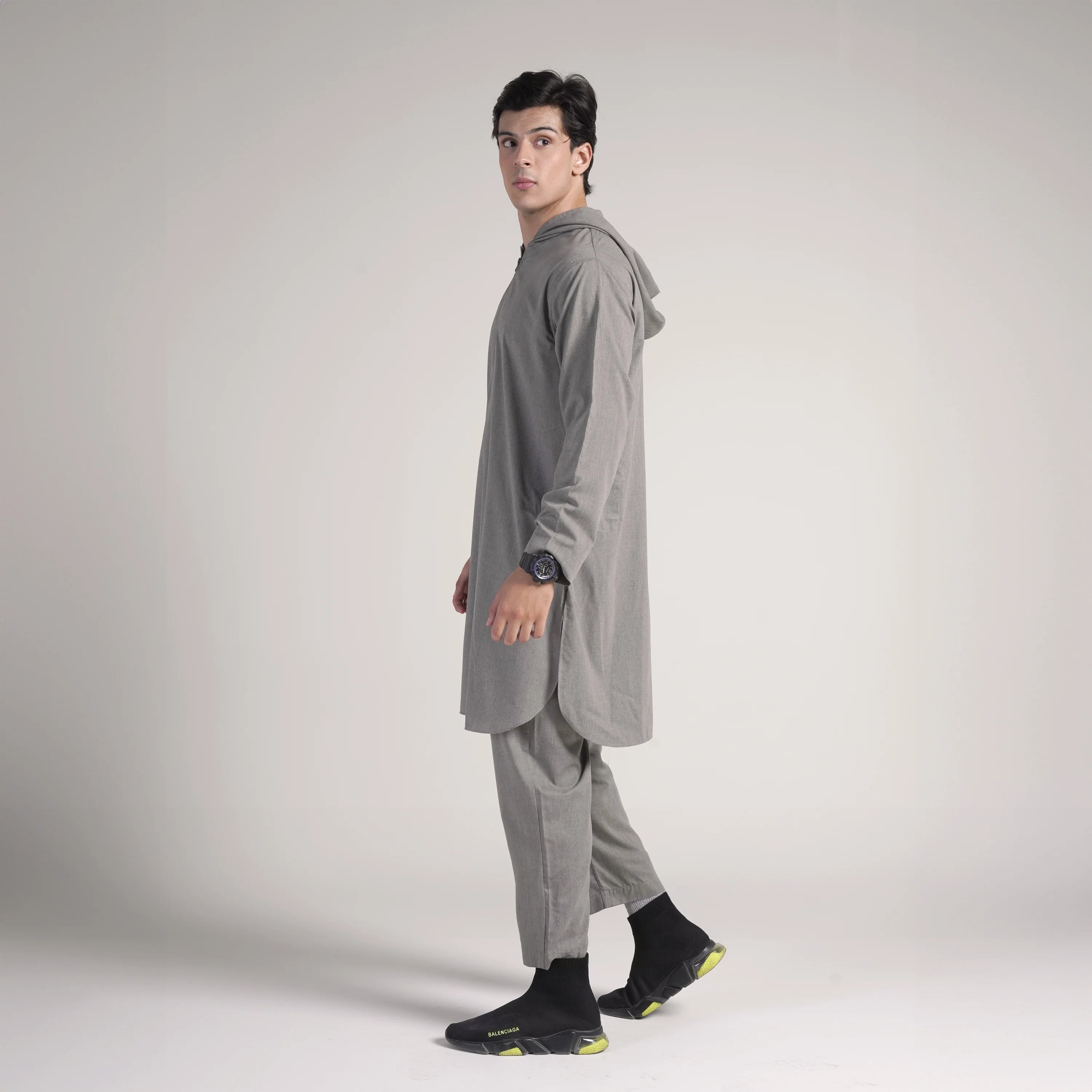 Steel Contemporary Kurta Hoodie Suit