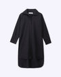 | Design | Pen-button closure · Classic collar · Wide cuffs · Dual chest pockets · Rounded hemline |