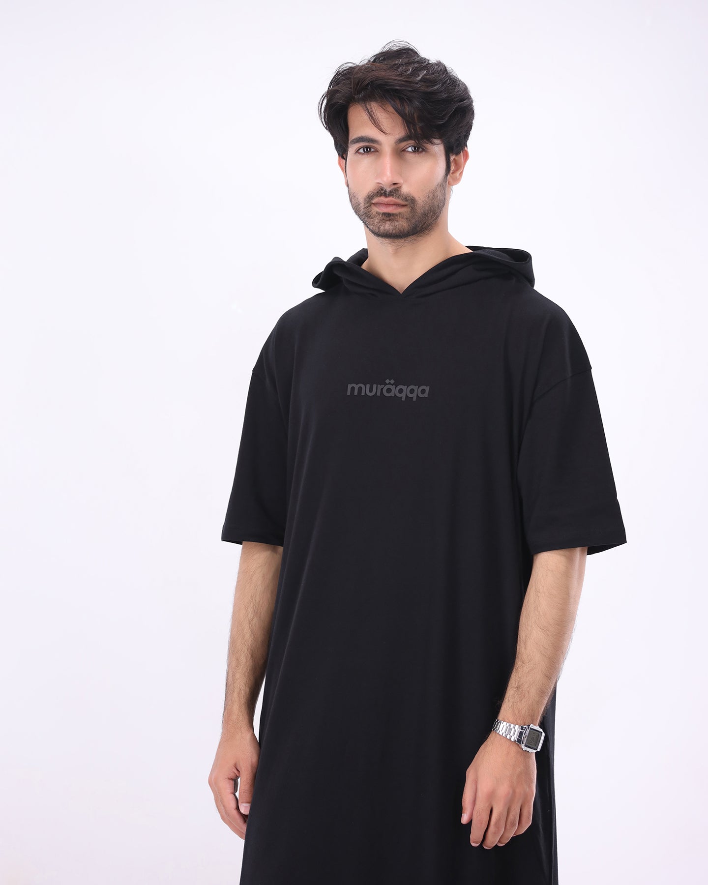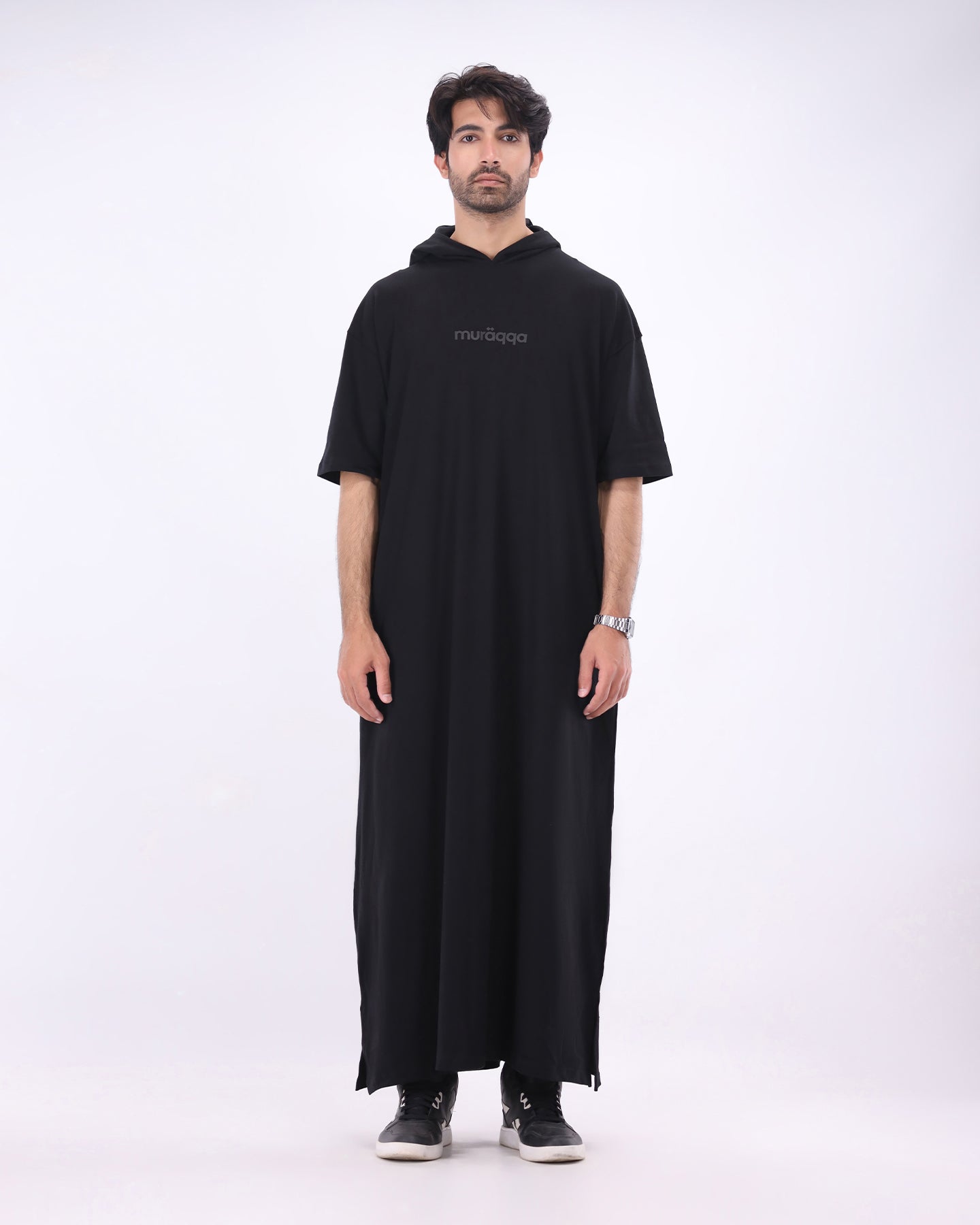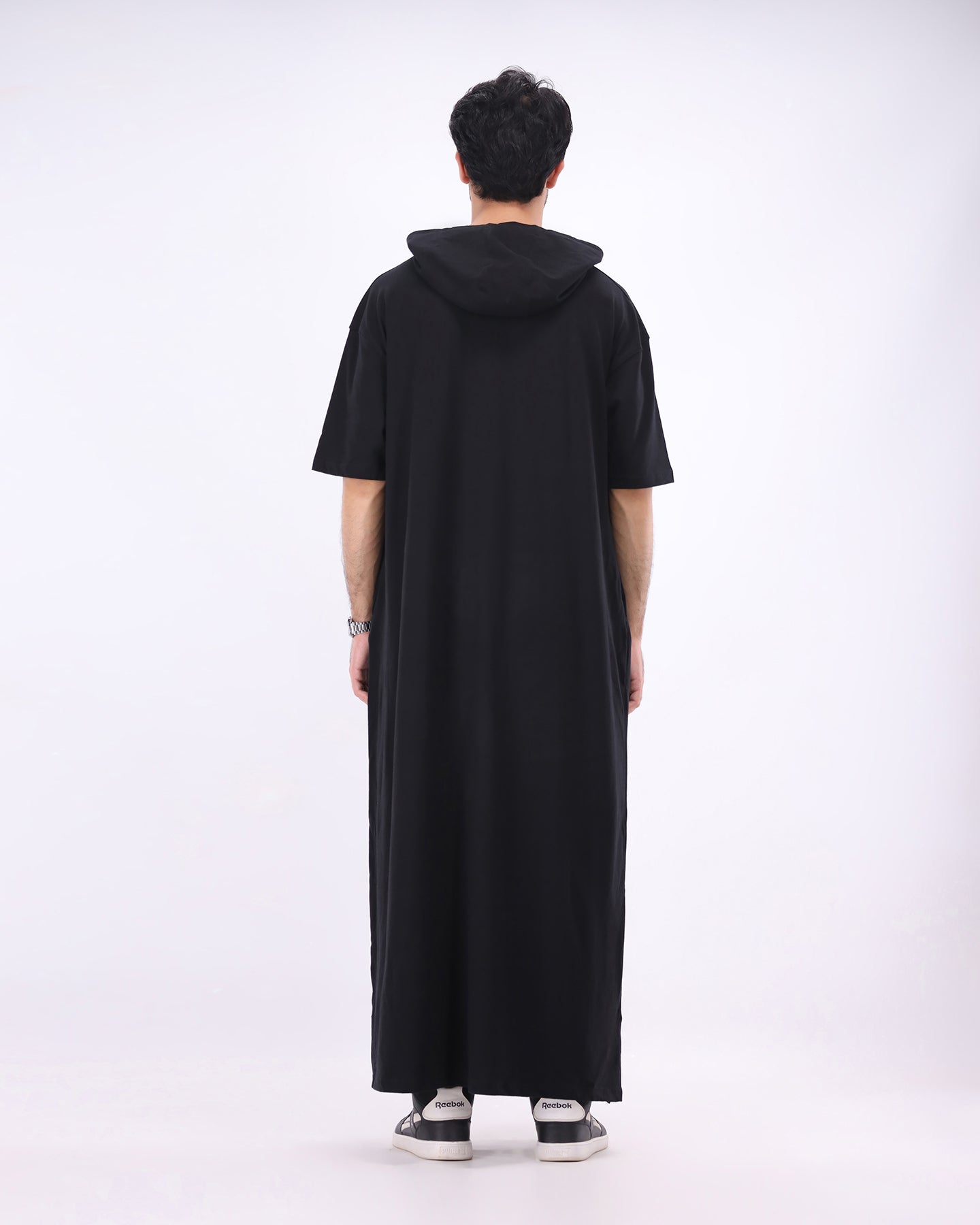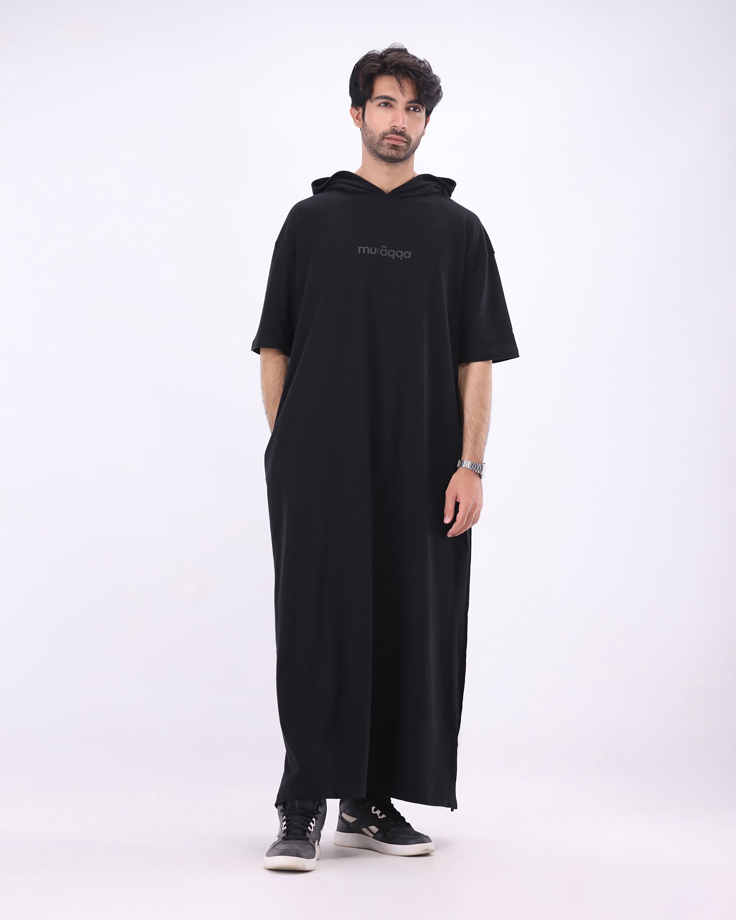 Crafted from premium jersey fabric, Sehr delivers a smooth drape with substantial weight — offering comfort without compromising structure. The hood adds a contemporary edge while maintaining modest coverage.