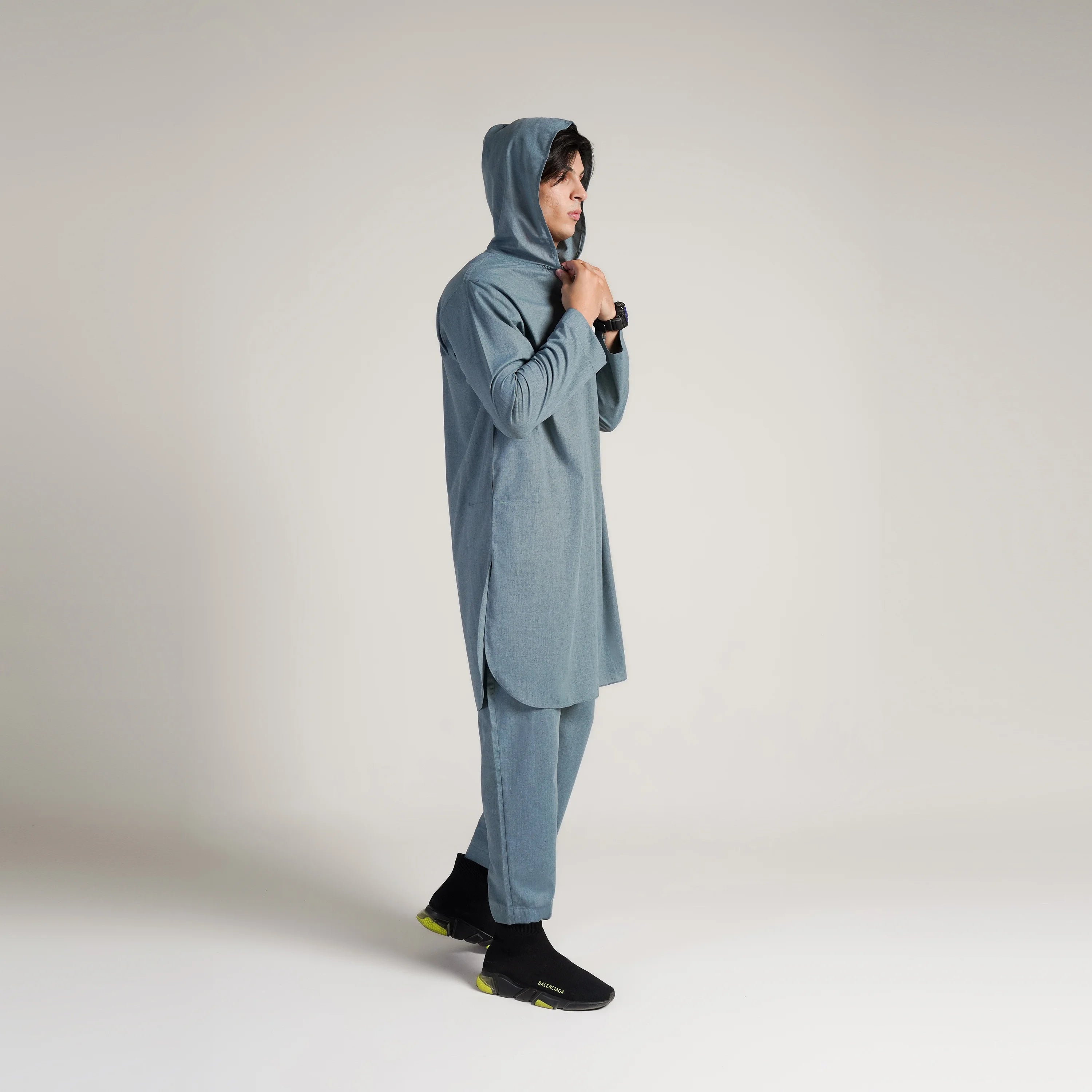 Aegean Teal Contemporary Kurta Hoodie Suit