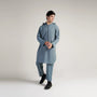 "The Aegean Teal Contemporary Kurta Hoodie" – a refreshing blend of modern flair and classic comfort, perfect for your summer wardrobe.