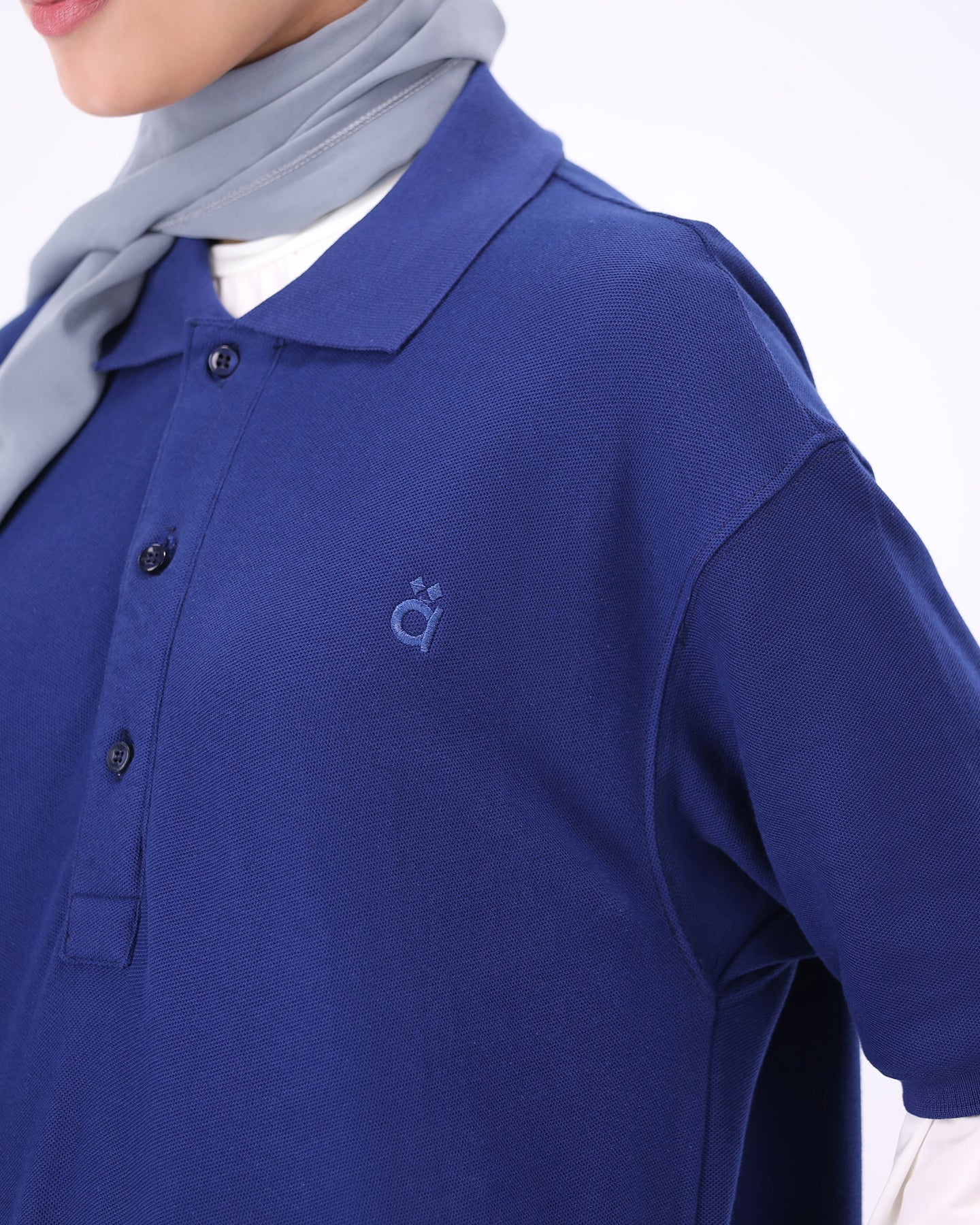 Design Classic polo collar · Button placket · Embroidered chest logo · Dual side pockets