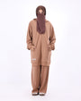 Crafted from midweight interlock fabric, the Dune Set offers a soft drape with gentle stretch and resilience. The slightly longer zipper top adds coverage and a refined silhouette, while the relaxed trouser ensures unrestricted movement and everyday comfort — ideal for travel, casual outings, or easy layering in cooler months.