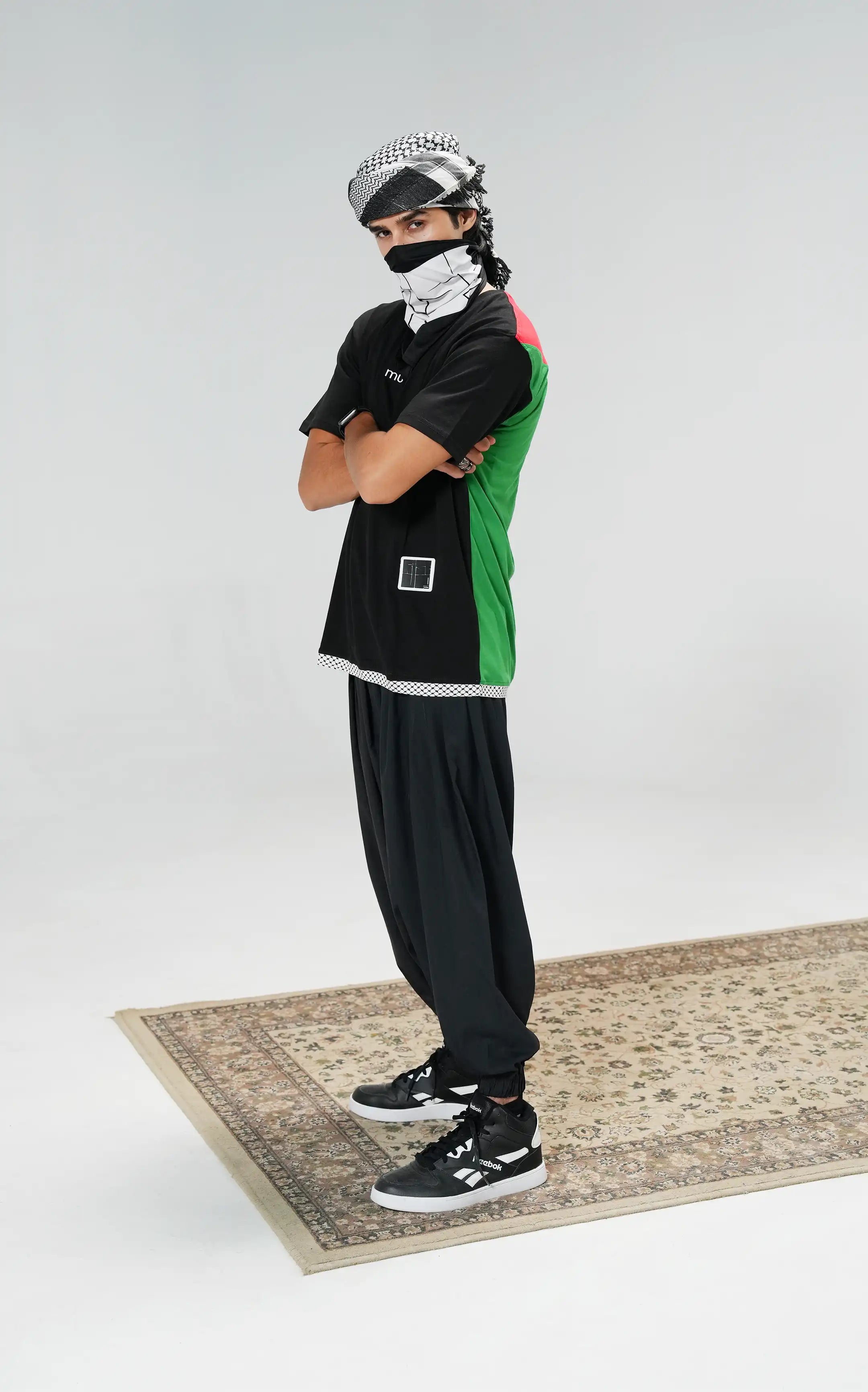 This oversized t-shirt showcases the Eternal Palestine Flag on the back, paired with a Keffiyah pattern at the bottom, symbolizing the rich heritage and culture of the land. Crafted from premium cotton, this tee offers exceptional softness and durability. Its distinctive design blends classic elements with a contemporary touch, making it a versatile and elegant addition to any wardrobe. Don’t miss out on this exclusive piece that perfectly combines enduring style with everyday comfort.