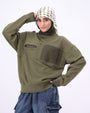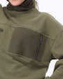 Design Utility-inspired · Chest zipper pocket · Concealed welt pocket · Ribbed cuffs and hem · Embossed rubber patch branding