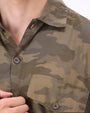 | Design | Camo print · Dual lower patch pockets · Chest pocket · Straight hem |