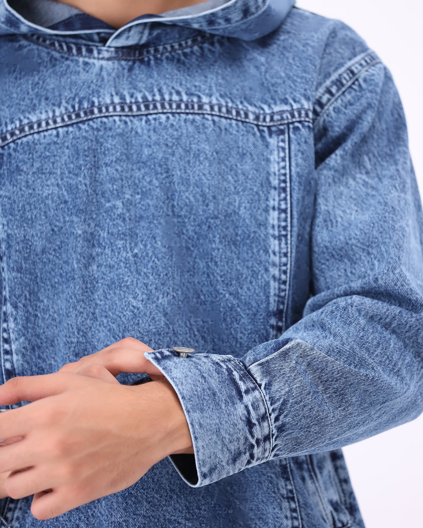 Built to move, made to last. The Forge Hoodie reimagines denim with a bold washed texture and utility-driven form. Its boxy silhouette and deep pockets blend street function with timeless edge — a statement layer that works across seasons.