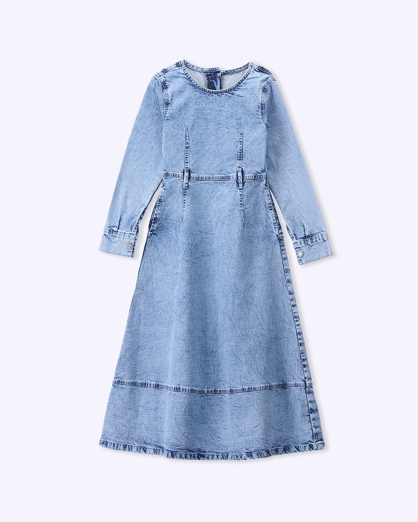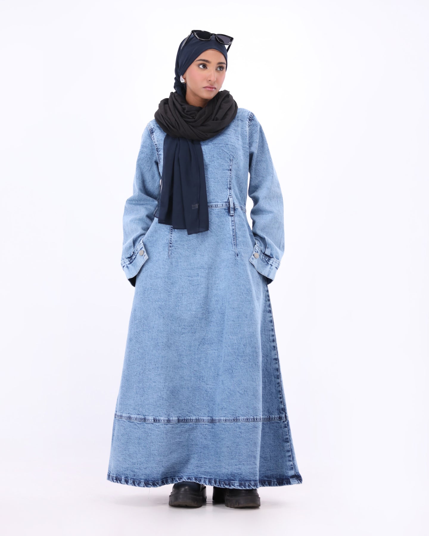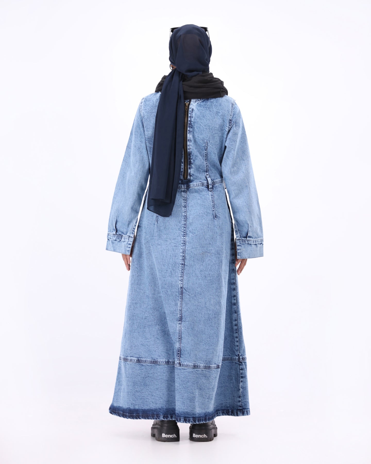 Clean lines. Endless depth. The Horizon Vista Dress captures the balance between flow and form — a full-length denim silhouette designed to move with you, not against you. Its structure is timeless, its presence quietly powerful.