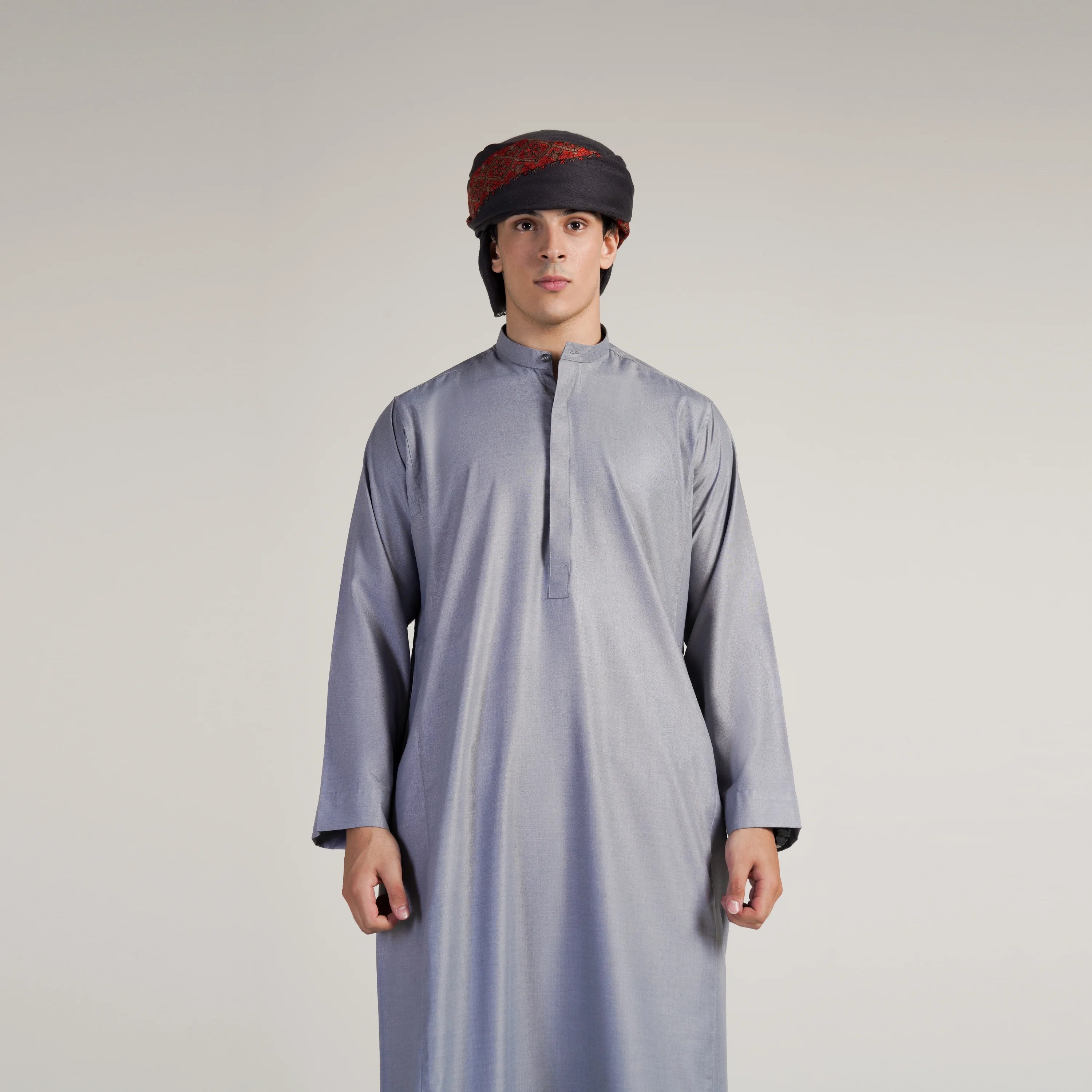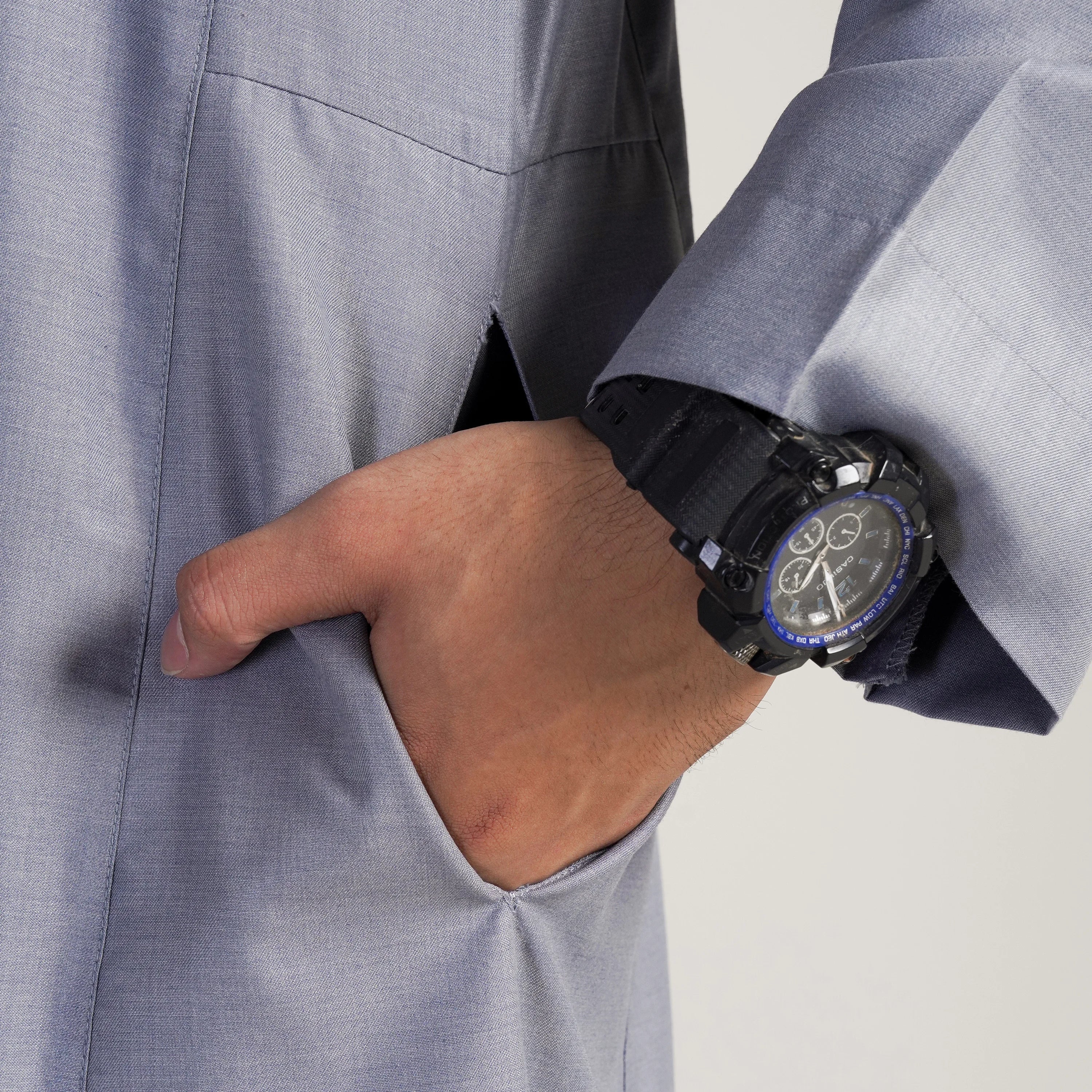 Introducing our Lunar Mist Thobe, a formal Saudi-style garment designed with meticulous attention to detail. This thobe features a sleek silhouette and is crafted from high-quality fabric, offering a perfect combination of comfort and elegance. Ideal for formal events, the Lunar Mist Thobe embodies timeless style and cultural heritage.