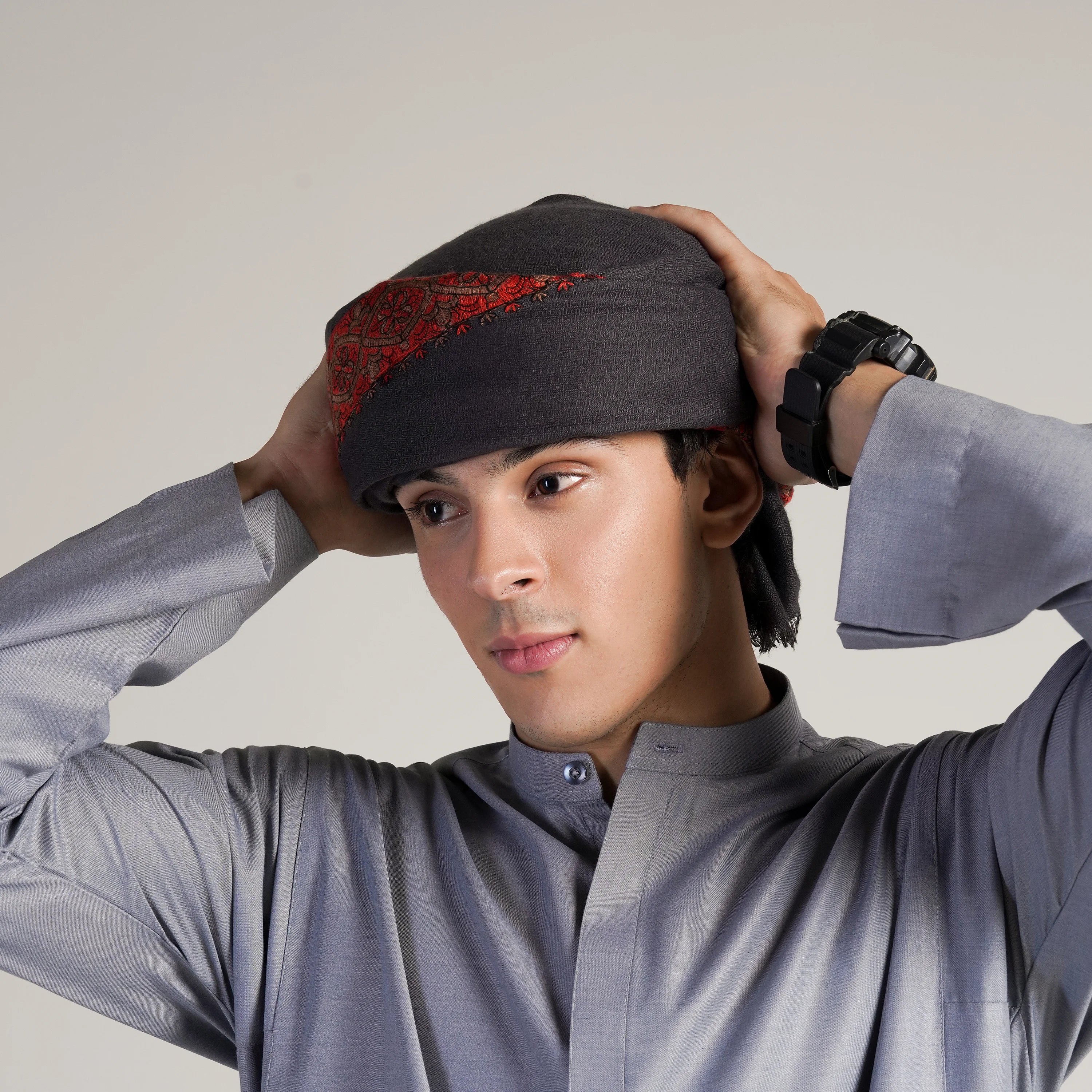 Each Muraqqa piece is crafted with care, and we recommend treating it the same. Wash gently on cold and inside-out to protect the fabric and detailing. Avoid bleach, tumble drying, and prolonged sun exposure. Air dry and steam or lightly iron to maintain the garment’s natural drape and premium finish.