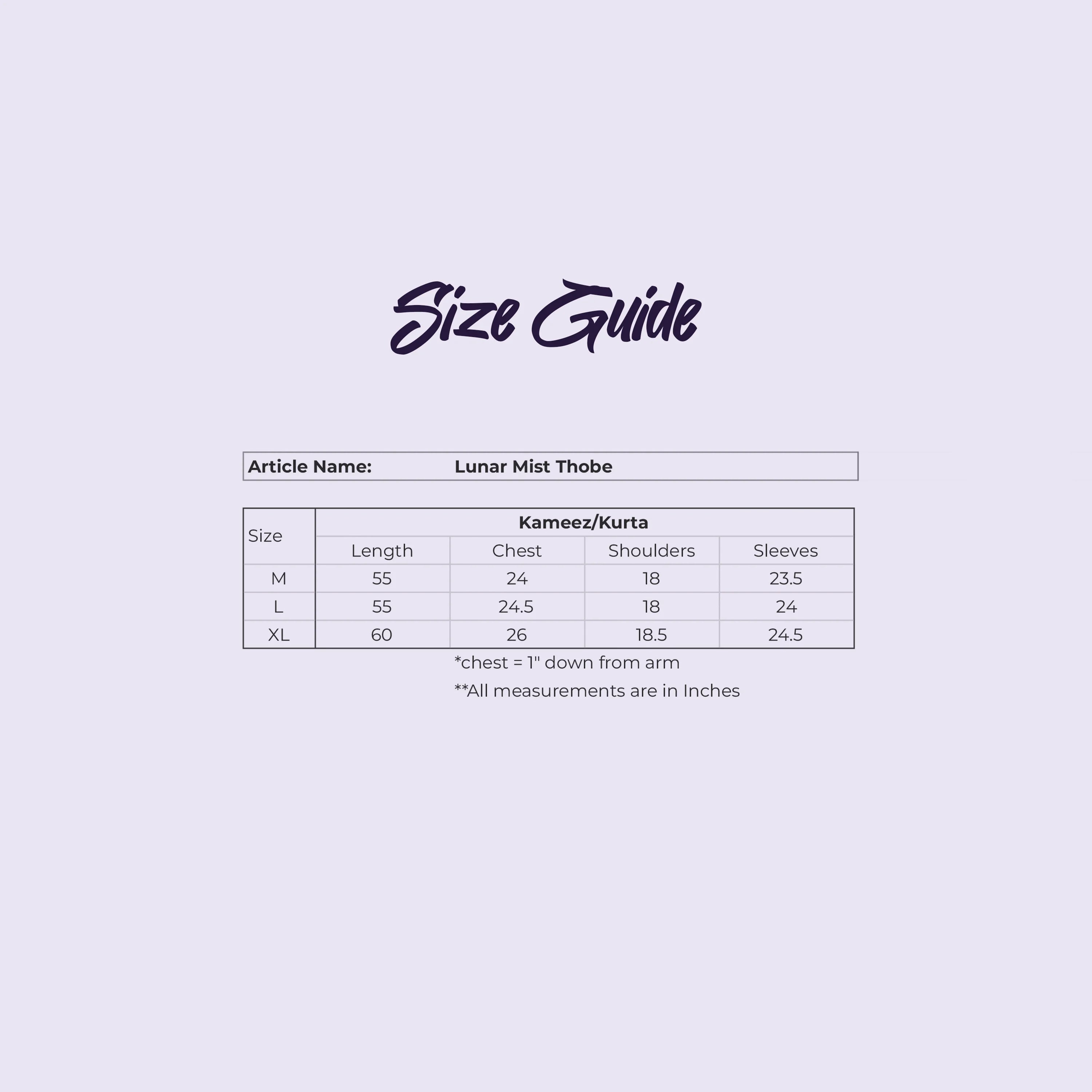 Finding your perfect fit is important to us. Our size guide helps you choose the right size with confidence. Each piece is crafted with precision, and sizing may vary slightly depending on the style and fabric — so we recommend reviewing measurements carefully before placing your order.