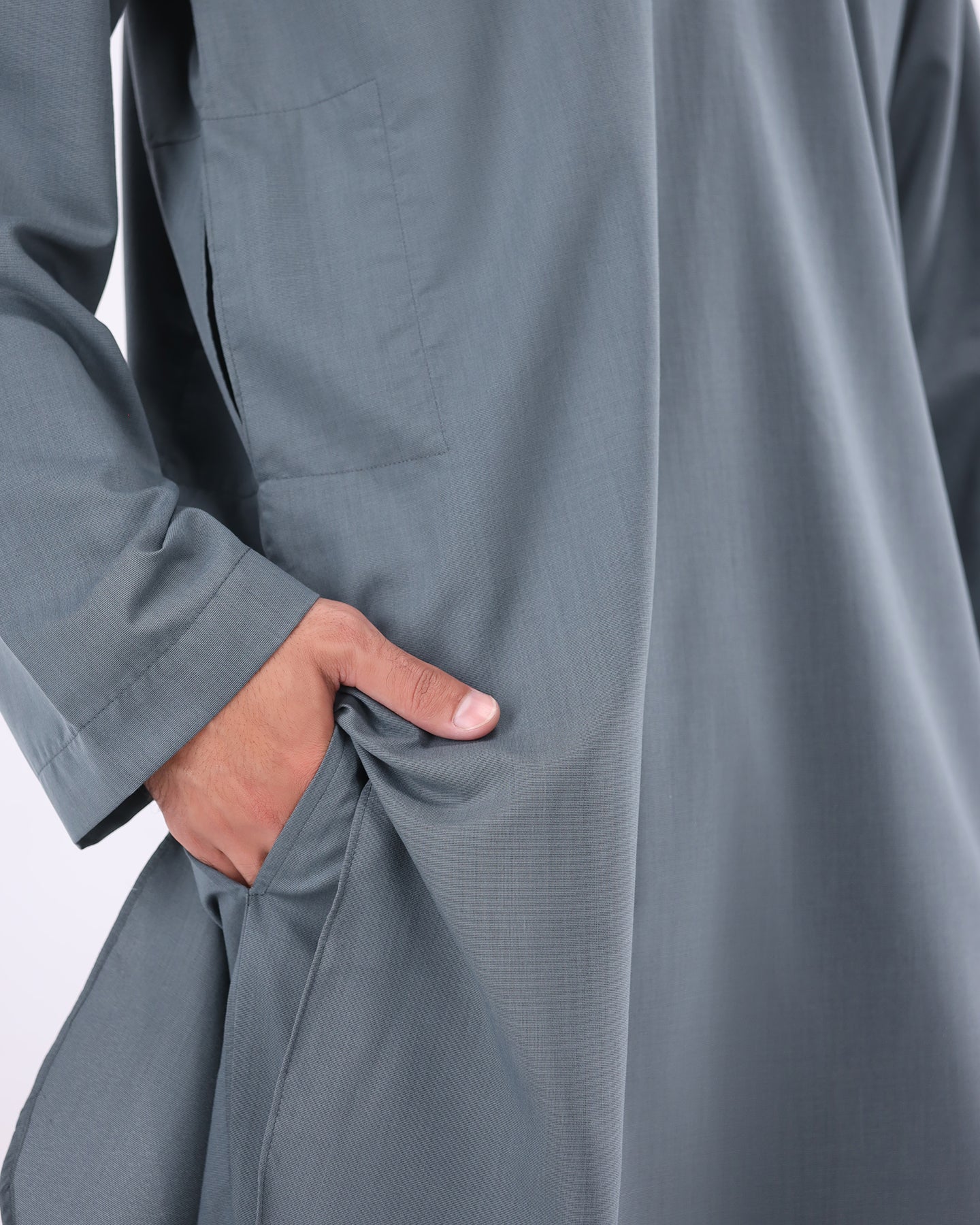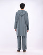 The hood adds a contemporary streetwear edge while maintaining a clean modest silhouette, making it ideal for Ramadan nights, Eid gatherings, travel, and everyday wear.