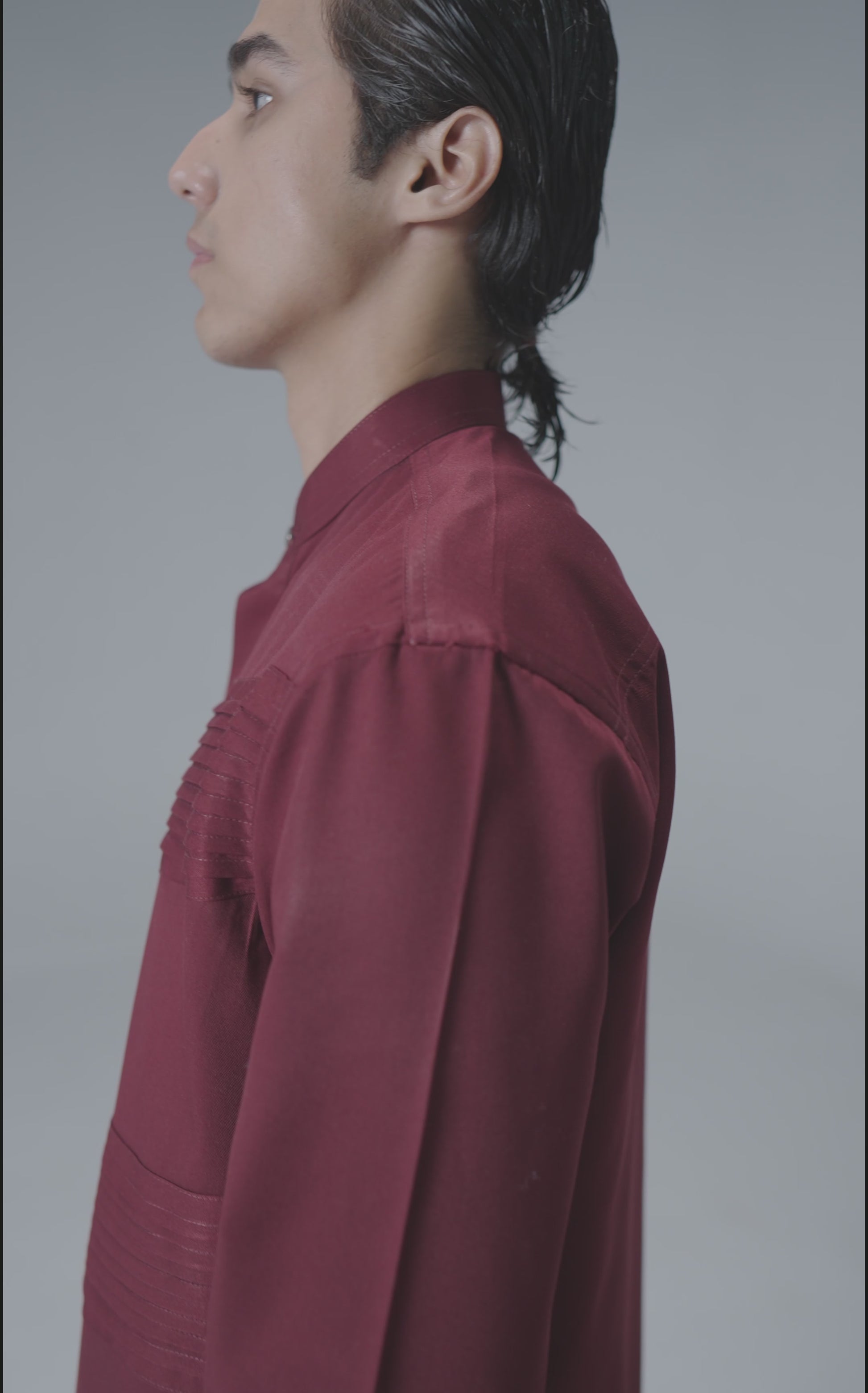 | Fabric | Premium suiting fabric in an elegant maroon for a refined look. |
