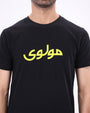 The bold back graphic challenges perception, while the minimal Arabic front keeps the design sharp and intentional.