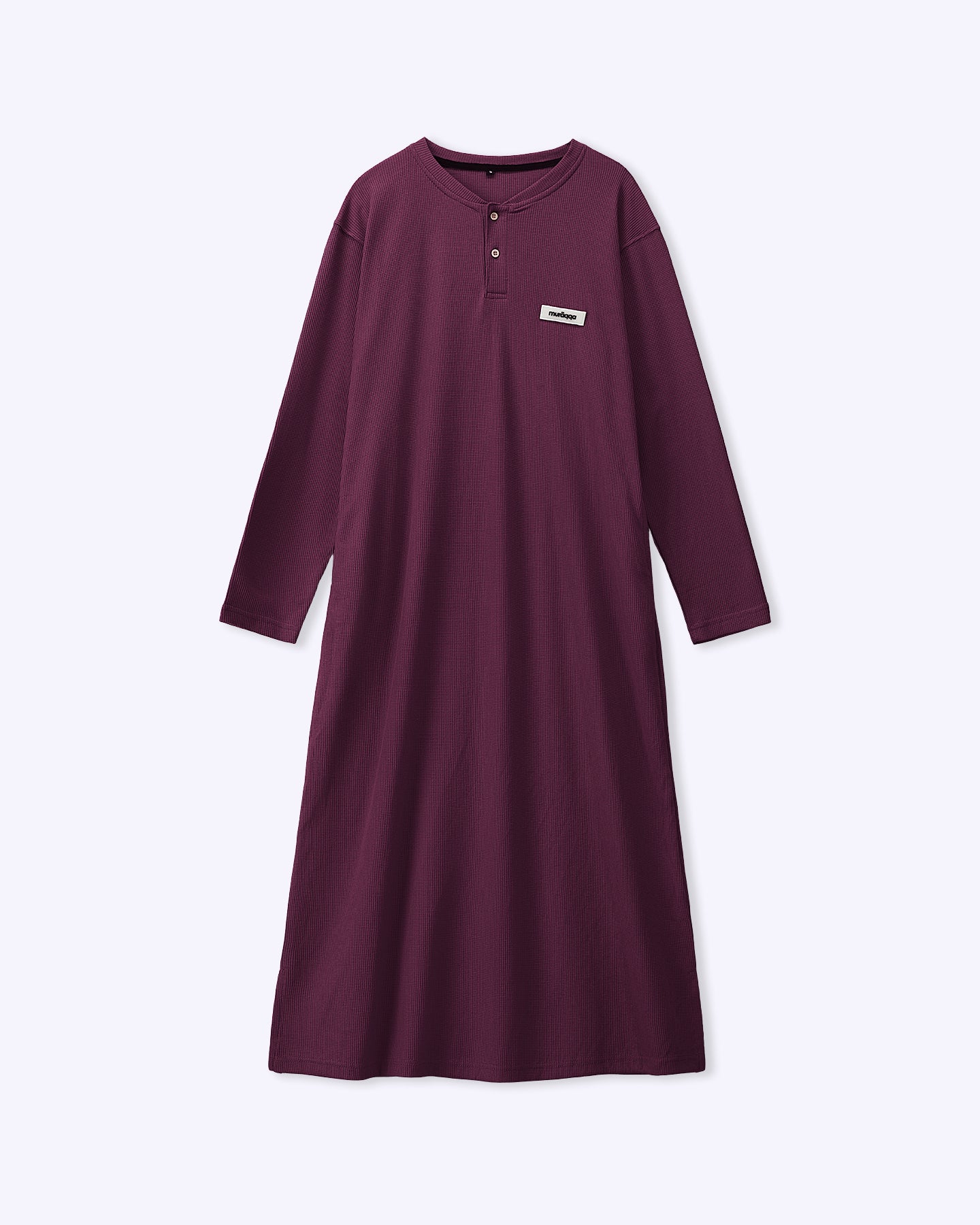 | Design | Waffle pattern texture · Round collar · Wooden-style button · Slim open sleeves · Side slit at hem · Hidden side pockets |