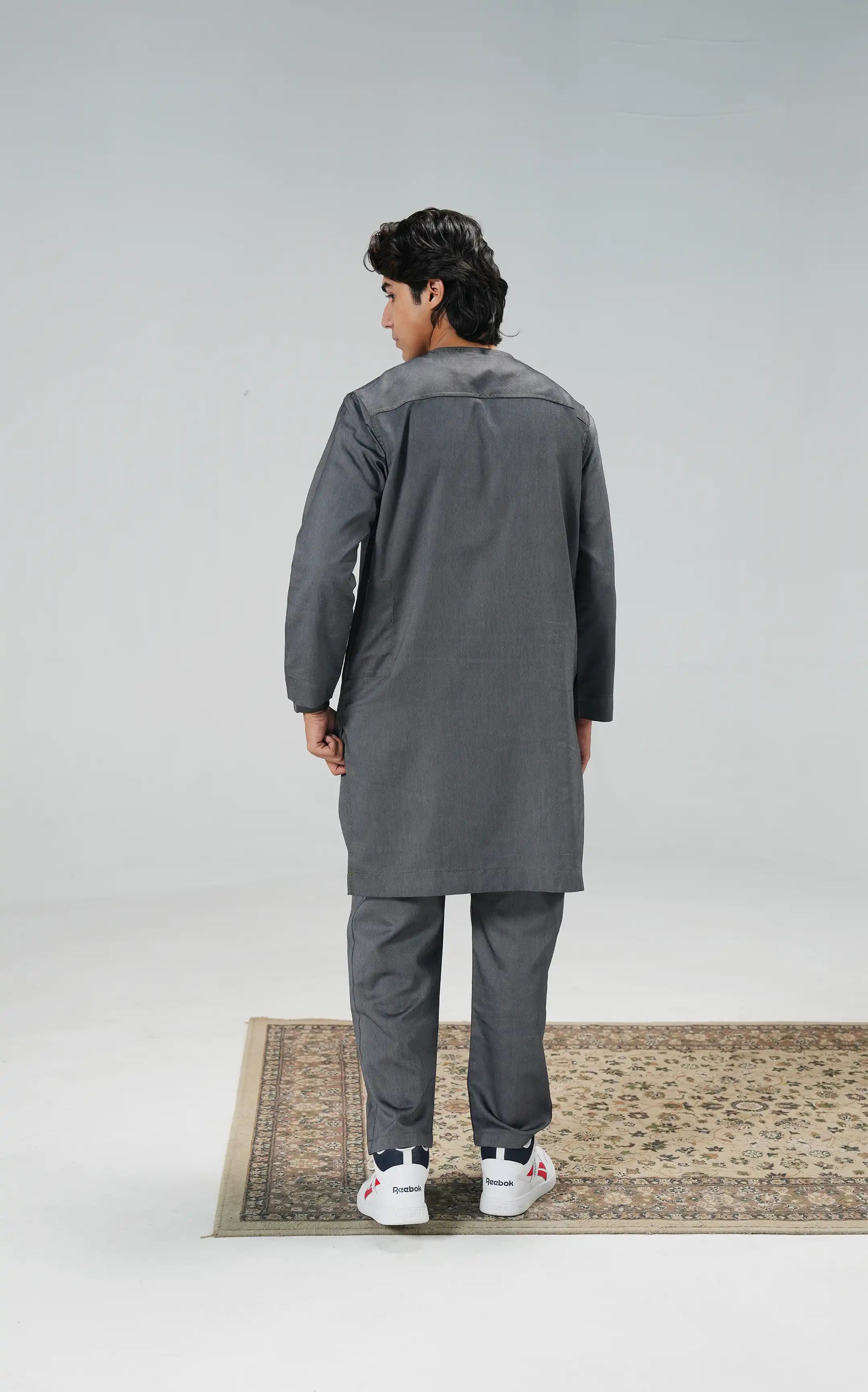 Each Muraqqa piece is crafted with care, and we recommend treating it the same. Wash gently on cold and inside-out to protect the fabric and detailing. Avoid bleach, tumble drying, and prolonged sun exposure. Air dry and steam or lightly iron to maintain the garment’s natural drape and premium finish.